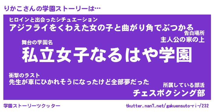| 女子向けラノベタイトル風あだ名 | 『りかこ姫と円卓の騎士』『りかこ恋絵巻』 |