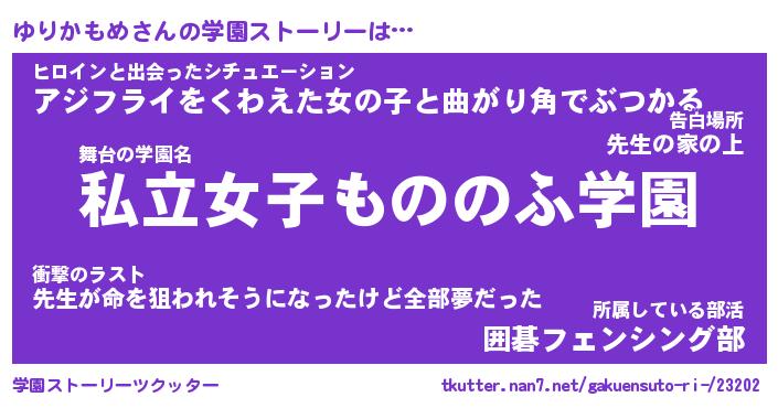 | ファンタジー風あだ名 | 『ユリフェル』『エターナルユリカモメー』 |