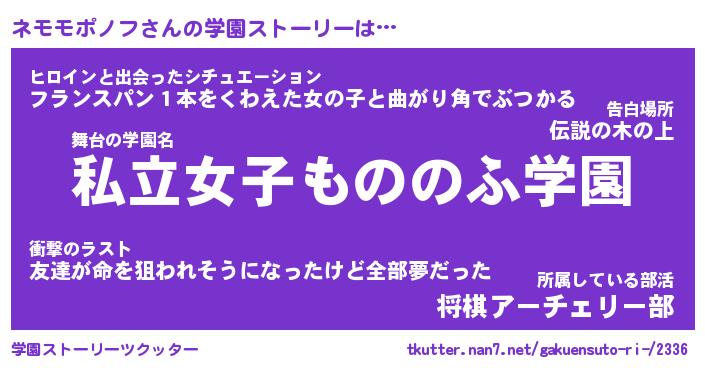 | 女子向けラノベタイトル風あだ名 | 『ネモモポノフ姫と円卓の騎士』 |