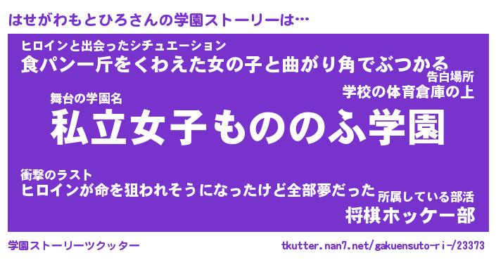 | 女子向けラノベタイトル風あだ名 | 『誰かこのはせがわもとひろを説明してください! ~契約から始まるウェディング~』 |