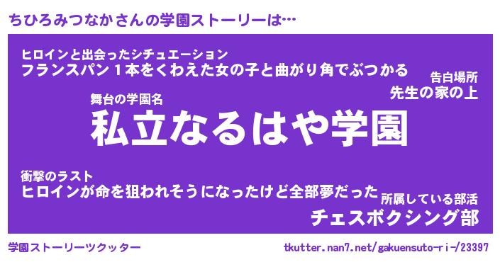 | 告白場所 先生の家の上 …「ふぃぎゅこ」 | 2月17日 06:24 |