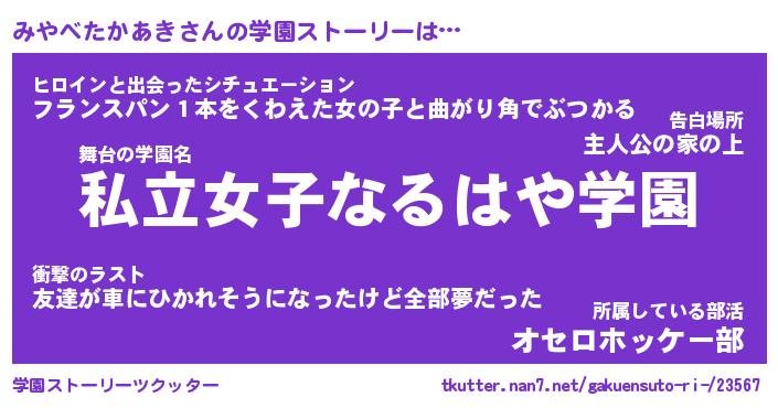 | 女子向けラノベタイトル風あだ名 | 『誰かこのみやべたかあきを説明してください! ~契約から始まるウェディング~』 |
