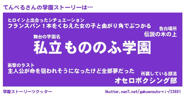 | 女子向けラノベタイトル風あだ名 | 『(仮)てんぺるのやんごとなき事情』 |