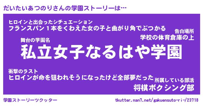 | 女子向けラノベタイトル風あだ名 | 『だいたいあつのり姫と円卓の騎士』 |