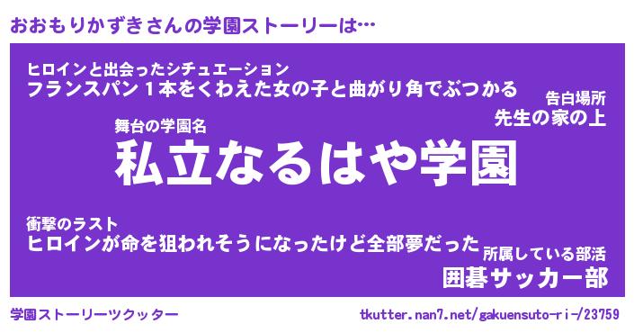 | 女子向けラノベタイトル風あだ名 | 『(仮)おおもりかずきのやんごとなき事情』 |
