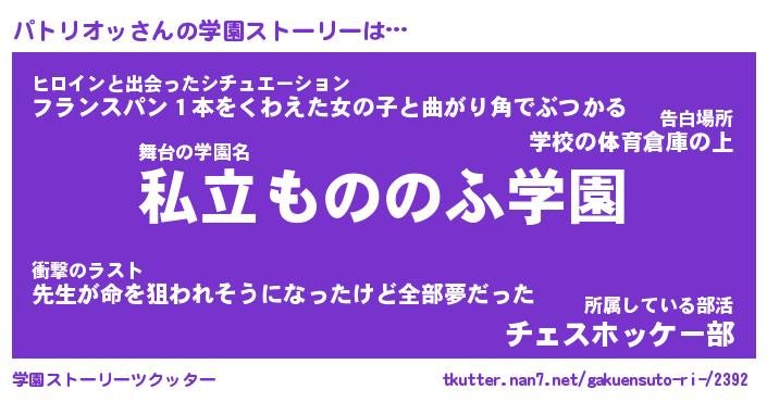 | 男性向けラノベタイトル風あだ名 | 『パトリオッの憂鬱』 |