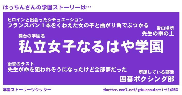 | 告白場所 先生の家の上 …「ふぃぎゅこ」 | 2月17日 06:24 |