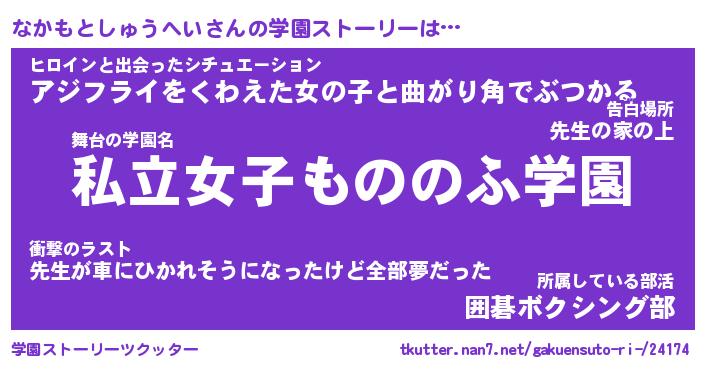 | 女子向けラノベタイトル風あだ名 | 『誰かこのなかもとしゅうへいを説明してください! ~契約から始まるウェディング~』 |