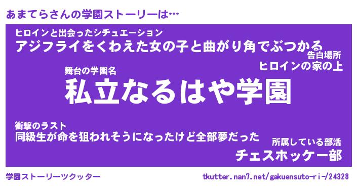| 伝説のあだ名 | 『伝説のスナイパーあまてら』 |