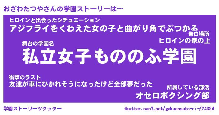 | 男性向けラノベタイトル風あだ名 | 『オザワタツヤアートオンライン』 |