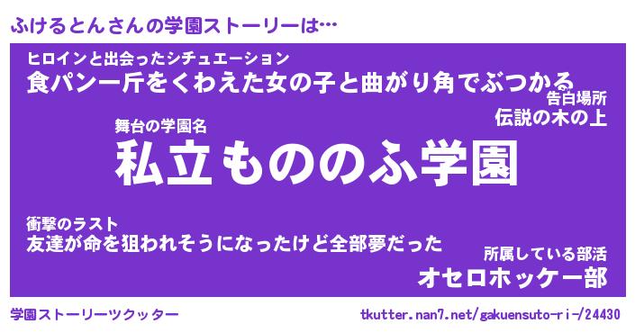 | 男性向けラノベタイトル風あだ名 | 『ふけるとんの憂鬱』 |