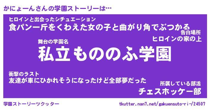 | 男性向けラノベタイトル風あだ名 | 『かにょーんの憂鬱』 |