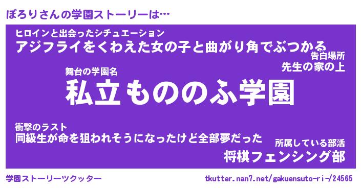 | 男性向けラノベタイトル風あだ名 | 『ぽろりの憂鬱』 |