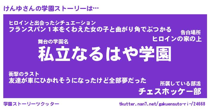 | 男性向けラノベタイトル風あだ名 | 『けんゆの憂鬱』 |