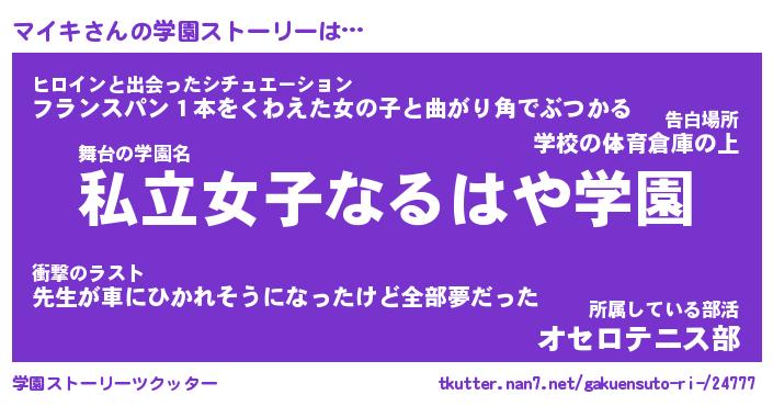 | 女子向けラノベタイトル風あだ名 | 『マイキ姫と円卓の騎士』『マイキ恋絵巻』 |