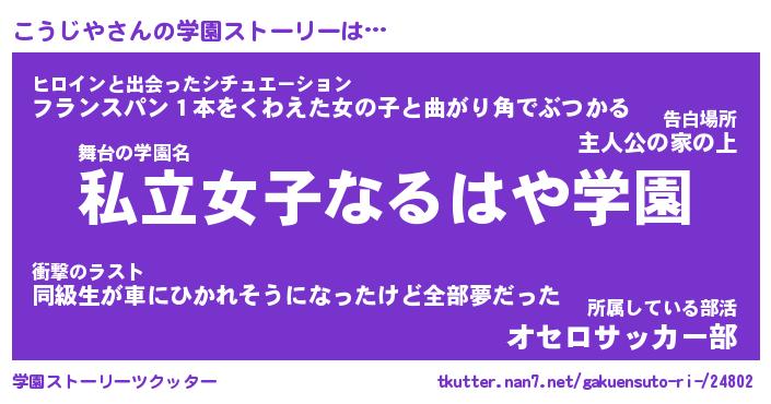 | 女子向けラノベタイトル風あだ名 | 『こうじや姫と円卓の騎士』 |