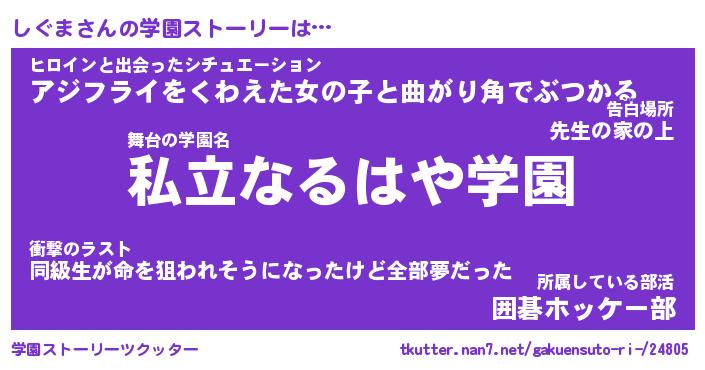 | 告白場所 先生の家の上 …「ふぃぎゅこ」 | 2月17日 06:24 |