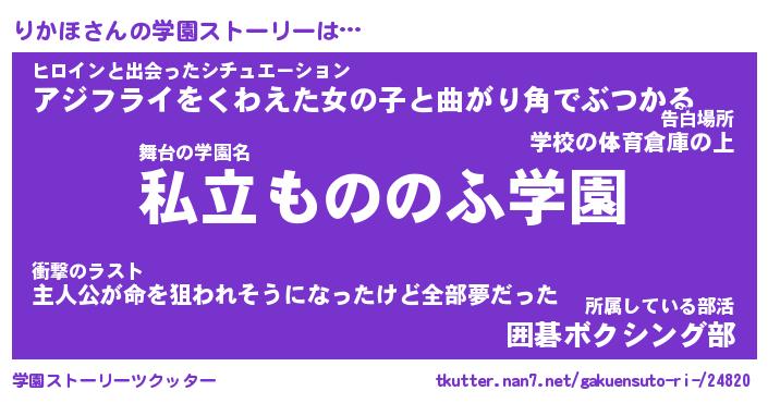 | 女子向けラノベタイトル風あだ名 | 『りかほ姫と円卓の騎士』『りかほ恋絵巻』 |