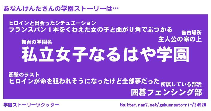 | 伝説のあだ名 | 『封印されしスナイパーあなんけんた』 |