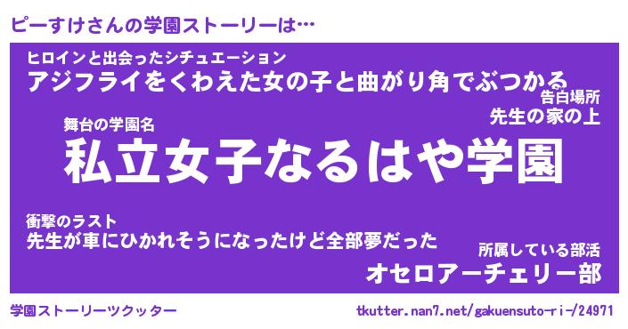 | 女子向けラノベタイトル風あだ名 | 『ピーすけ姫と円卓の騎士』 |