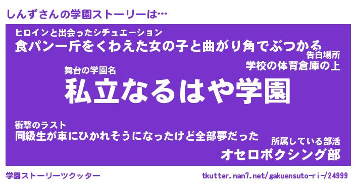 | 男性向けラノベタイトル風あだ名 | 『しんずの憂鬱』 |
