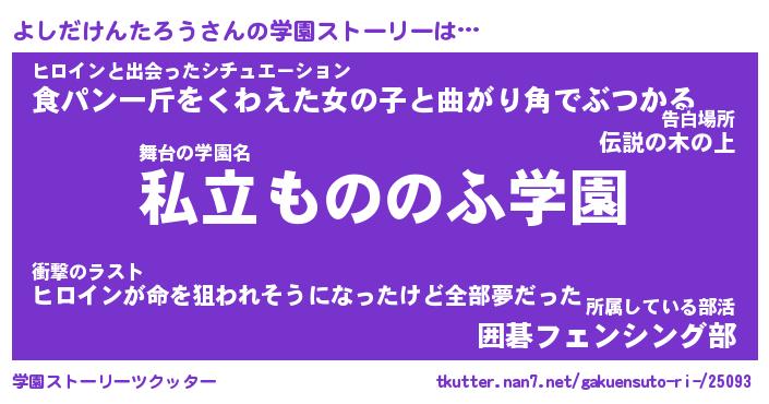 | 男性向けラノベタイトル風あだ名 | 『よしだけんたろうの憂鬱』 |