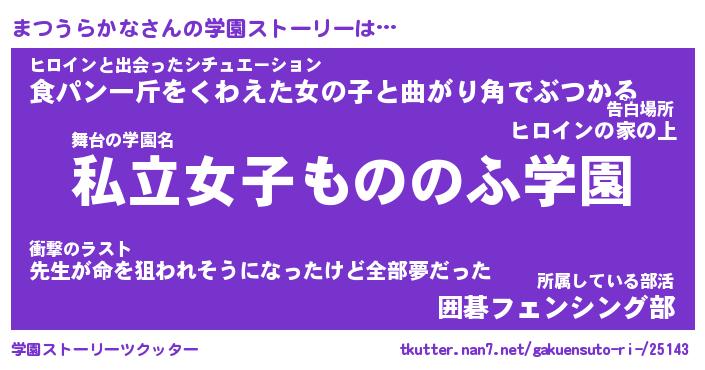 | 告白場所 先生の家の上 …「ふぃぎゅこ」 | 2月17日 06:24 |