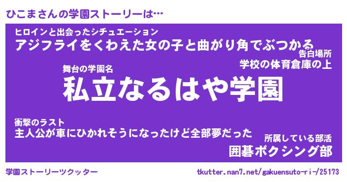 | 女子向けラノベタイトル風あだ名 | 『ひこま姫と円卓の騎士』 |