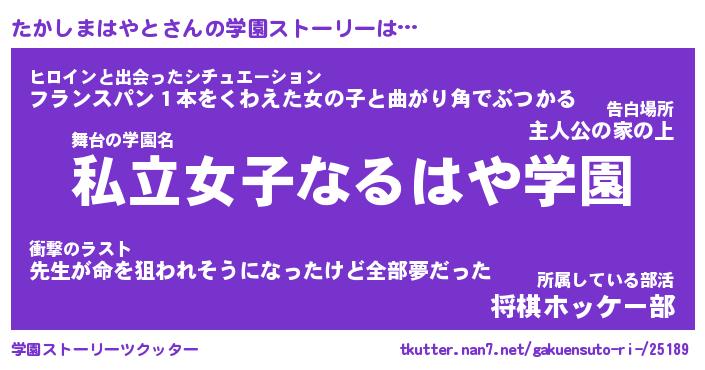 | 肩書あだ名 | 『たかしまはやと御曹司』 |