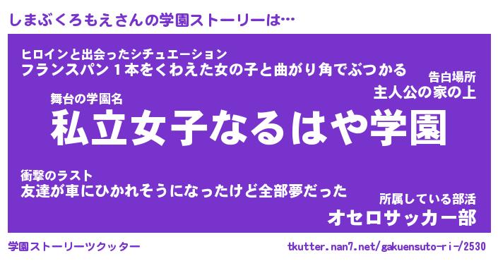 | 女子向けラノベタイトル風あだ名 | 『誰かこのしまぶくろもえを説明してください! ~契約から始まるウェディング~』 |