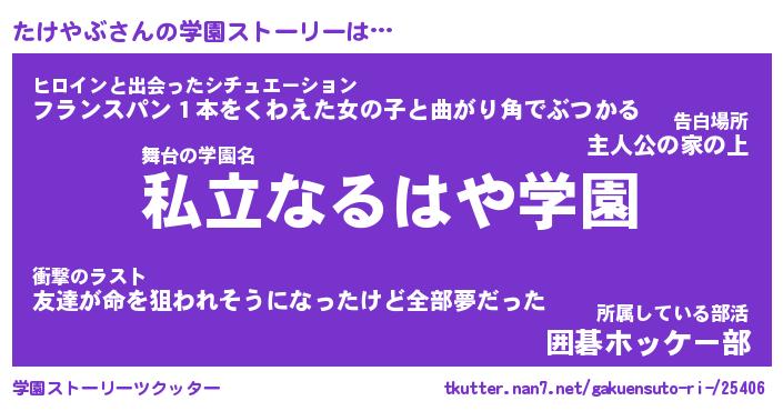 | 男性向けラノベタイトル風あだ名 | 『たけやぶの憂鬱』 |