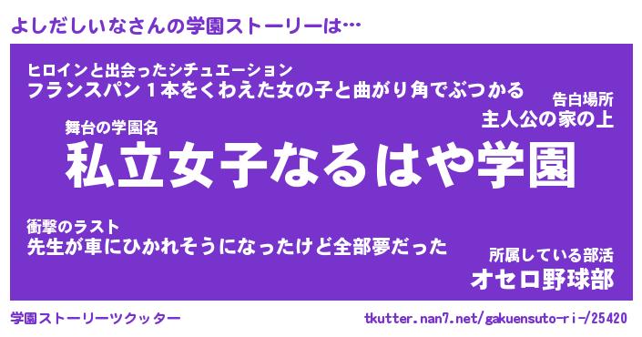 | 伝説のあだ名 | 『封印されしスナイパーよしだしいな』 |