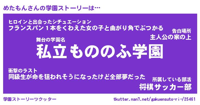 | 男性向けラノベタイトル風あだ名 | 『めたもんの憂鬱』 |