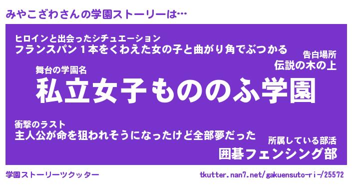 | ファンタジー風あだ名 | 『ミヤフェル』『エターナルミヤコザワー』 |