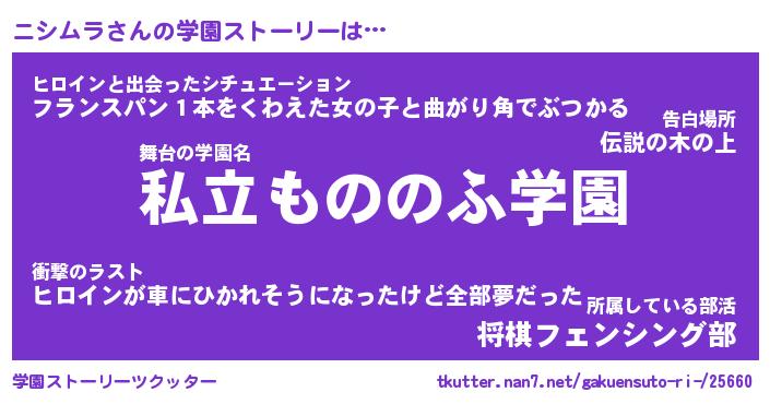 | 男性向けラノベタイトル風あだ名 | 『ニシムラの憂鬱』 |