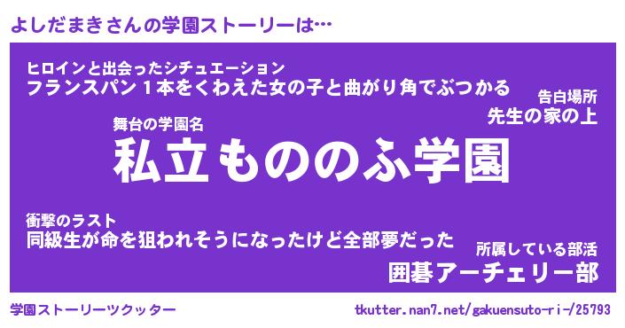 | 男性向けラノベタイトル風あだ名 | 『よしだまきの憂鬱』 |