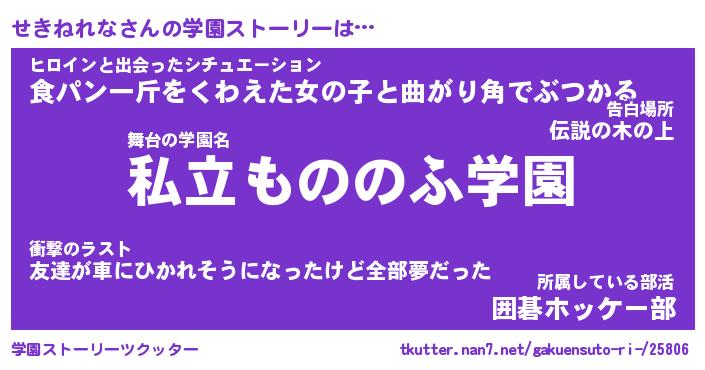 | 男性向けラノベタイトル風あだ名 | 『せきねれなの憂鬱』 |