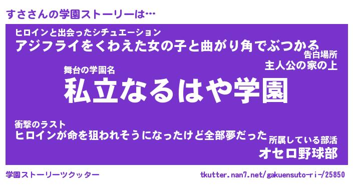 | 女子向けラノベタイトル風あだ名 | 『(仮)すさのやんごとなき事情』 |