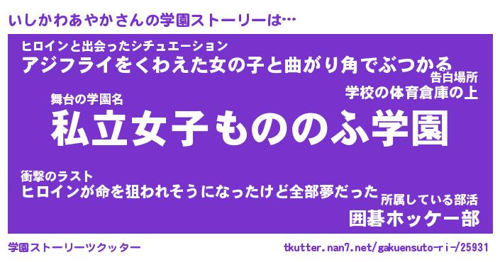 | 女子向けラノベタイトル風あだ名 | 『いしかわあやか姫と円卓の騎士』 |