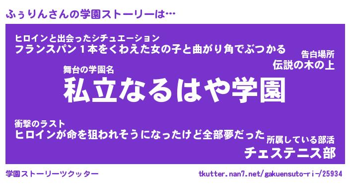 | 男性向けラノベタイトル風あだ名 | 『ふぅりんの憂鬱』 |