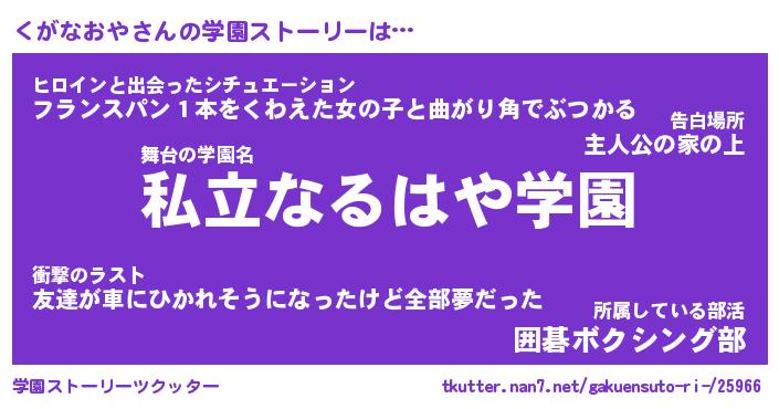 | 伝説のあだ名 | 『伝説のスナイパーくがなおや』 |