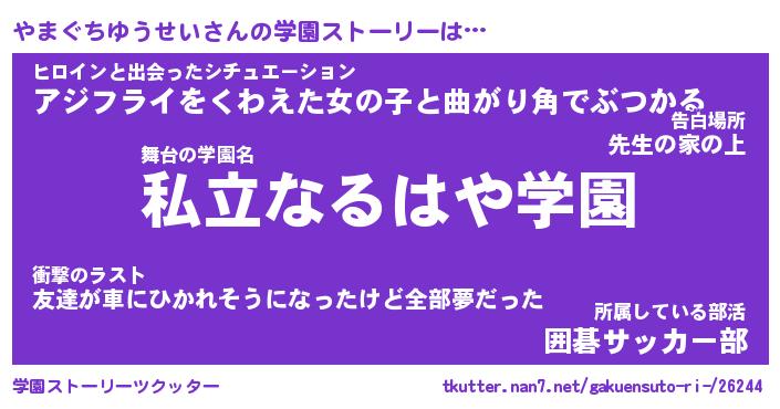 | 伝説のあだ名 | 『伝説のスナイパーやまぐちゆうせい』 |