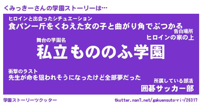 | 男性向けラノベタイトル風あだ名 | 『くみっきーの憂鬱』 |