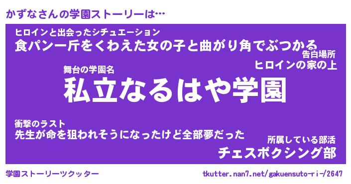 | 告白場所 先生の家の上 …「ふぃぎゅこ」 | 2月17日 06:24 |