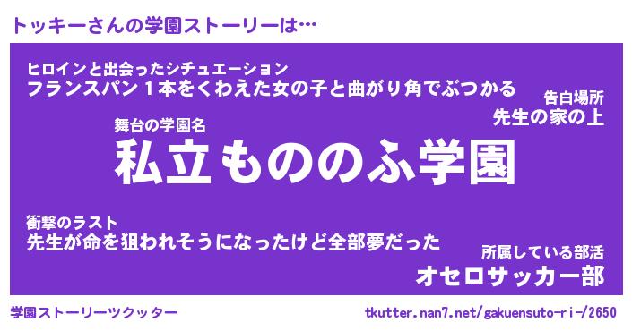 | 男性向けラノベタイトル風あだ名 | 『トッキーの憂鬱』 |