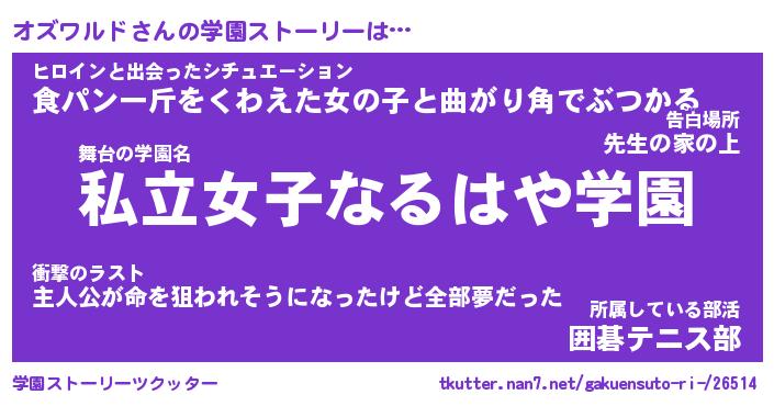 | ファンタジー風あだ名 | 『オズフェル』『エターナルオズワルドー』 |
