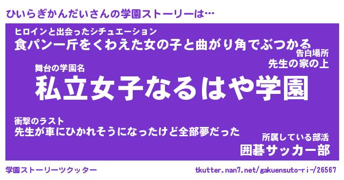 | 女子向けラノベタイトル風あだ名 | 『ひいらぎかんだい姫と円卓の騎士』 |
