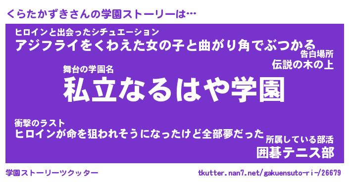 | 肩書あだ名 | 『くらたかずき御曹司』 |