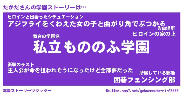 | 女子向けラノベタイトル風あだ名 | 『たかだ姫と円卓の騎士』『たかだ恋絵巻』 |