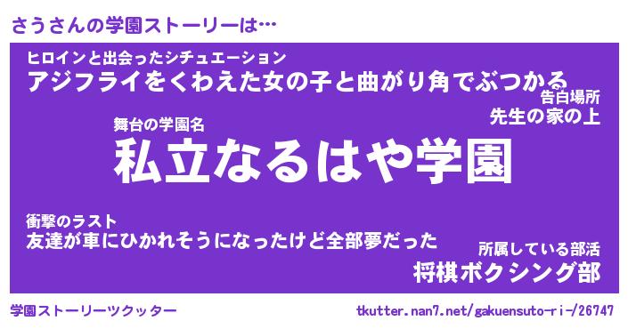 | 告白場所 先生の家の上 …「ふぃぎゅこ」 | 2月17日 06:24 |